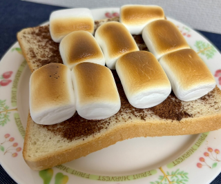 パンにミロ塗ってマシュマロ置いて焼いたの