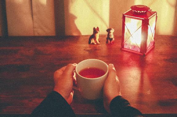 緑茶やコーヒーを飲みながら